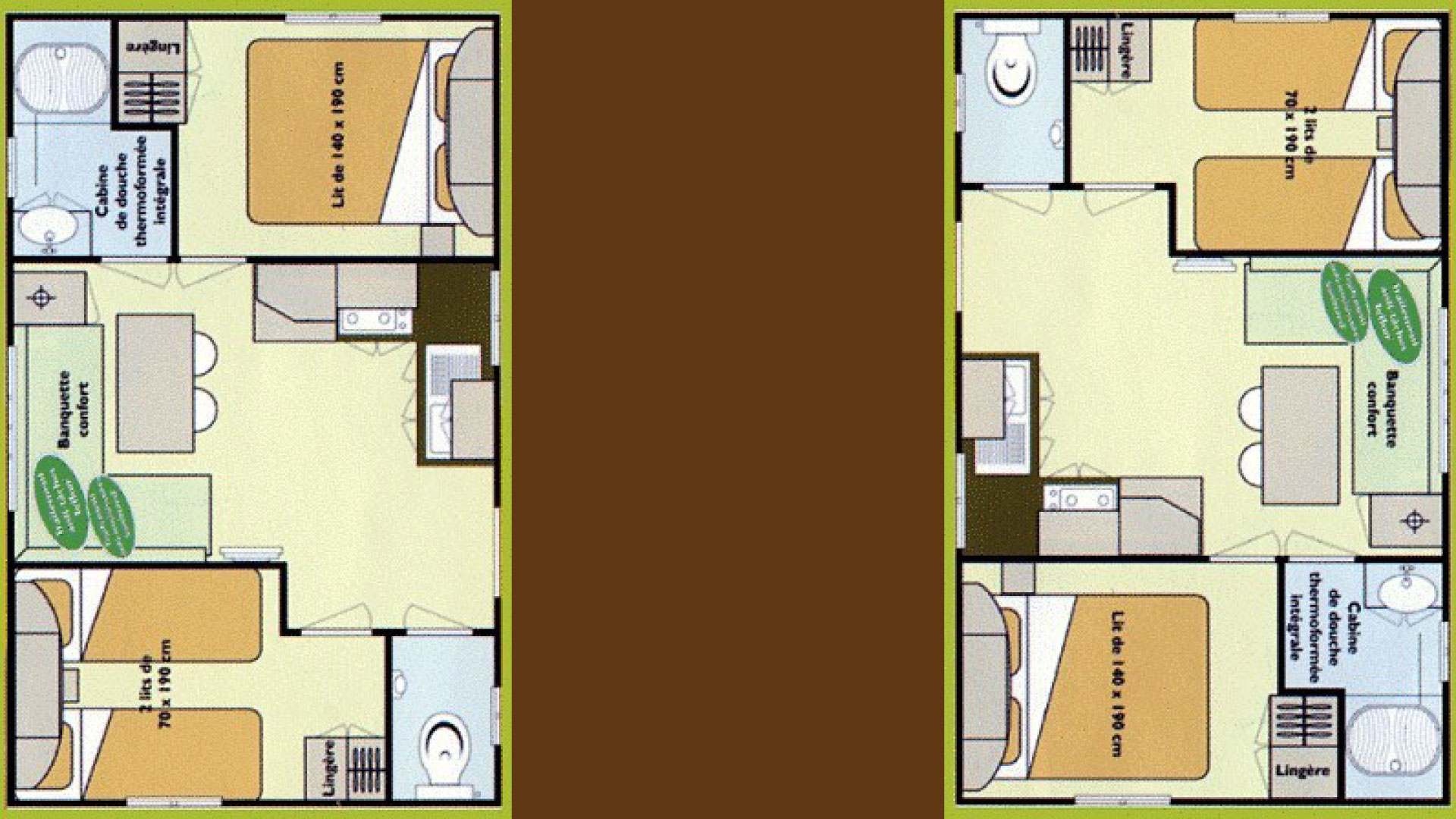 2 mobil homes de 2ch 4pl avec terrasse commune de 20 m²